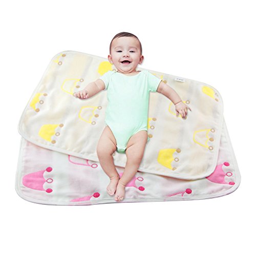 Hangnuo おむつ替えシート おむつ替えマット 3重ガーゼ防水シート 両面使える吸水 通気抗菌 良い肌さわり 出産お祝い (30*45CM, イエローとピンク王冠(二枚))