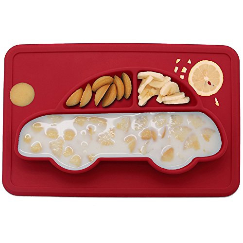 Hangnuo ベビー食器 食事マット ミニマット 吸盤付き 超強吸着 滑り止め シリコン マット 離乳食 食器 ランチプレートお皿 お食い初め 可愛い 誕生日プレゼント (赤)