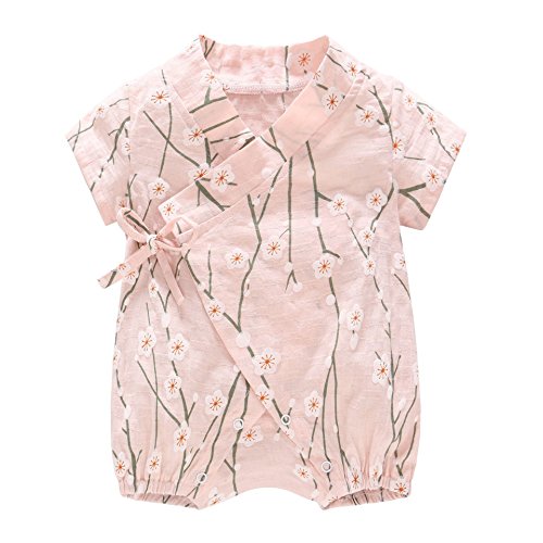ALLAIBB 浴衣 甚平 新生児 ロンパース 夏 半袖 女の子 かわいい 花火大会 ギフト 0-18M size 66 (桜)