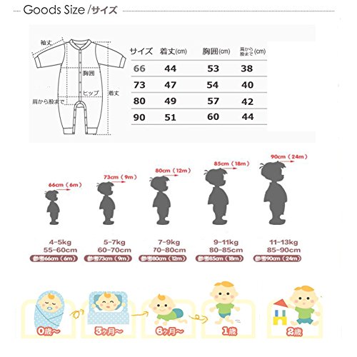 サイズ:66 推奨年齢:6M 着丈:44cm 胸囲:53cm 肩から股まで:38cm