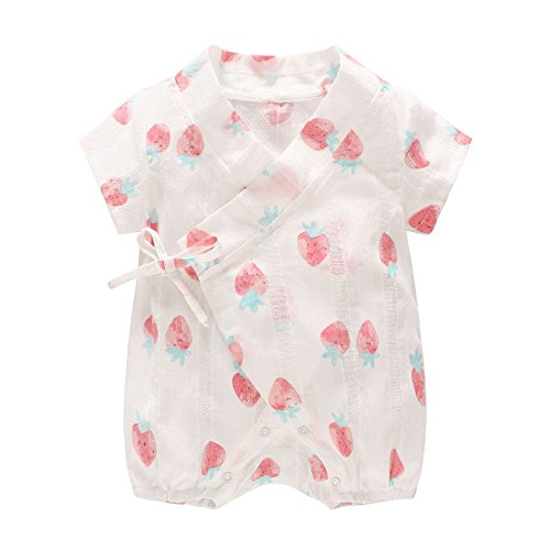 ALLAIBB 浴衣 甚平 新生児 ロンパース 夏 半袖 女の子 かわいい 花火大会 ギフト 0-18M size 90 (イチゴ)