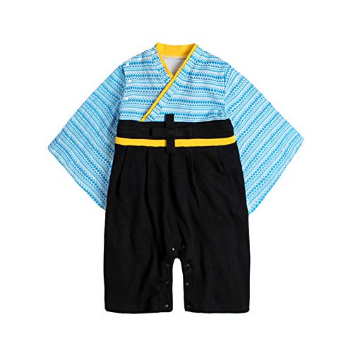 ALLAIBB 浴衣 袴 ロンパース 前開き カバーオール ベビー キッズ 和風 男の子 初節句 お食い初め 写真撮影 size 90 (ストライプ ブルー)