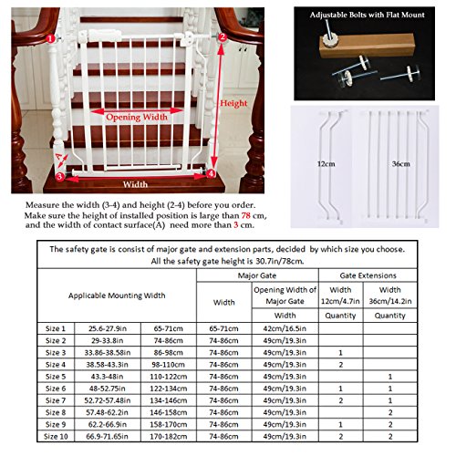 ALLAIBB Walk Through Baby Gate 自動閉鎖 ホワイト チャイルドセーフティーゲート、Ex 24.0-71.7 インチ EX. 38.6-43.3"/98-110 cm ホワイト AMALLUSW004605-98110WH