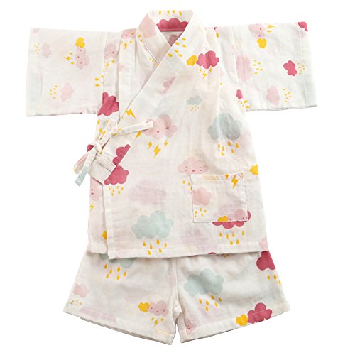 ALLAIBB 浴衣 甚平 ベビー服 女の子 男の子 和風ロンパース 半袖 かわいい 2点セット 花火大会 size 90 (雲)