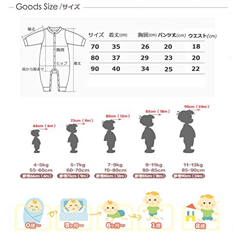 サイズ:70 着丈:35cm 胸囲:26cm パンツ丈:20cm ウエスト:18cm