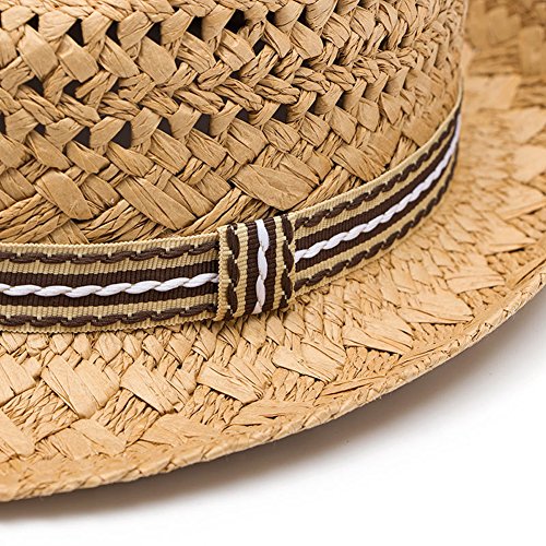 ALLAIBB 麦わら帽子 キッズ 男女兼用 紫外線対策 ファッション 折り畳み size ワンピース (ベージュ)