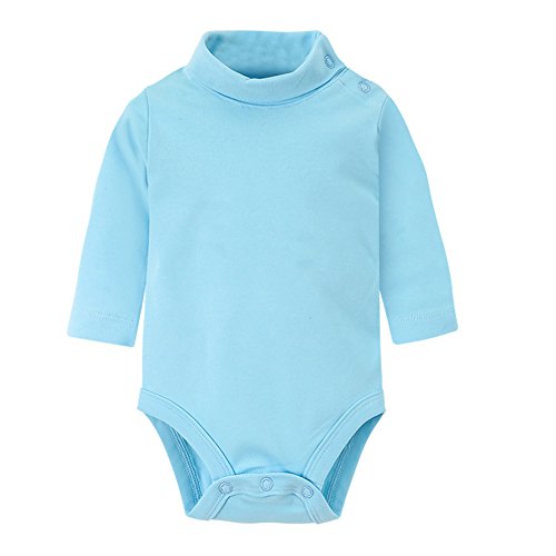 ALLAIBB ベビーロンパース 男女兼用 長袖ボディスーツ タートルネック 無地 パジャマ 6M ブルー