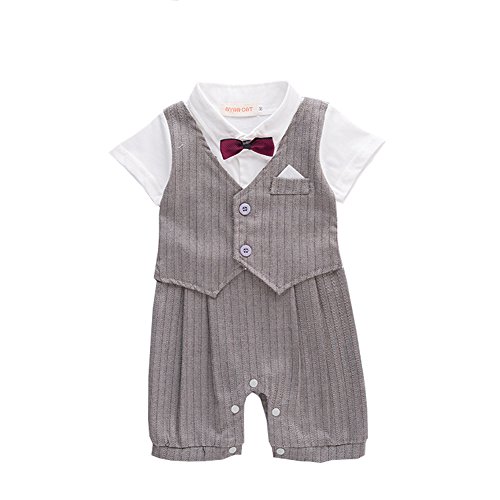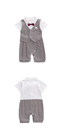 ALLAIBB ロンパース カバーオール スーツ 夏 半袖 フォマール 男の子 前開き セレモニー ネクタイ size 80 (グレー)