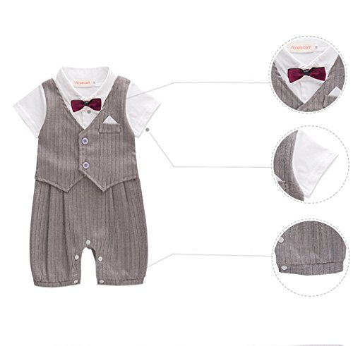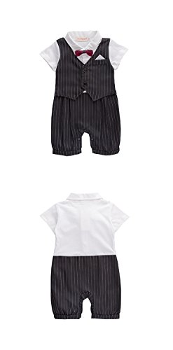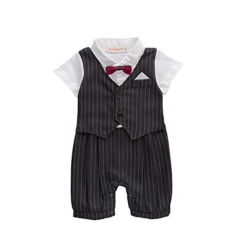 ALLAIBB ロンパース カバーオール スーツ 夏 半袖 フォマール 男の子 セレモニー ネクタイ size 80 (黒)
