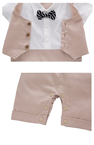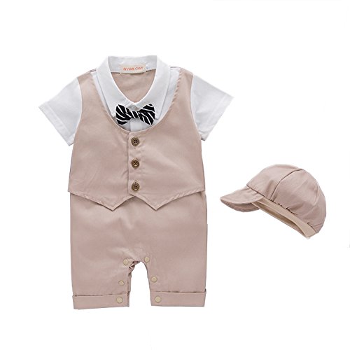 ALLAIBB ベビー服 ロンパース 2点セット 帽子 男の子 前開き フォマール スーツ 夏 半袖 蝶結び カーキ 80