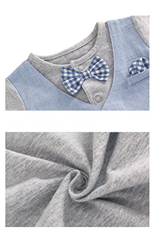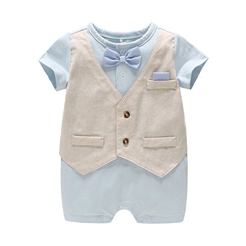 ALLAIBB ベビー服 偽2点セット ベスト ロンパース カバーオール フォーマル 男の子 夏 半袖 前開き 蝶ネクタイ 披露宴 お祝い カーキ 18-24M