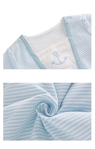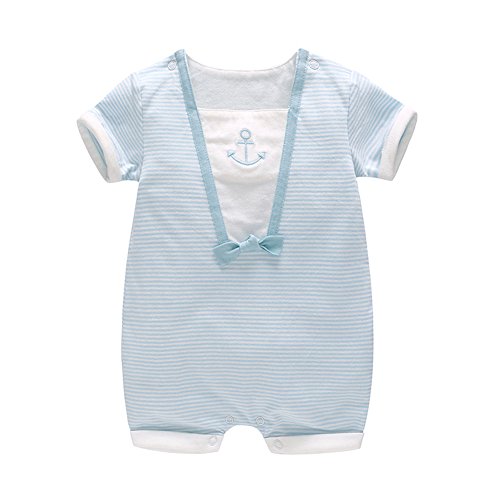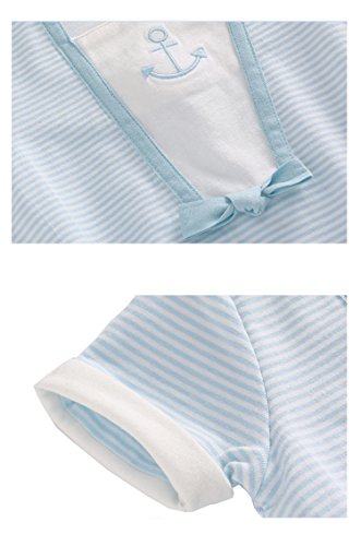 ALLAIBB ベビー服 男の子 女の子 夏 半袖 ロンパース カバーオール 前開き ボーダー 蝶結び 生産お祝い プレゼント ブルー