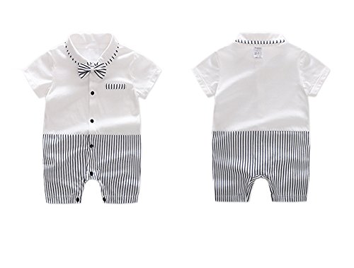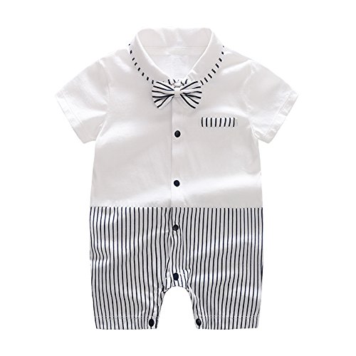 ALLAIBB ベビー ロンパース カバーオール フォーマル 夏 男の子 ストライプスーツ 蝶結び 偽サロペット スマイル 結婚式 生産お祝い size 73 (ストライプ)