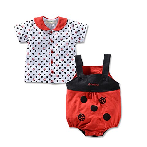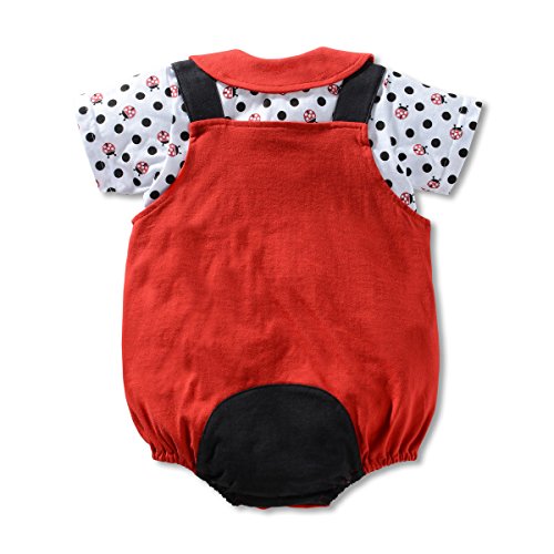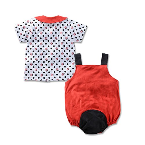 ALLAIBB ロンパース 夏 半袖 男の子 女の子 可愛い ベビー服 前開き 肌着 ポルカドット 生産祝い ギフト size 90 (赤テントウムシ)