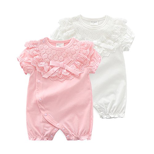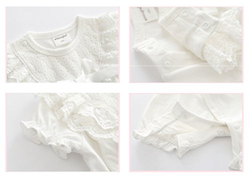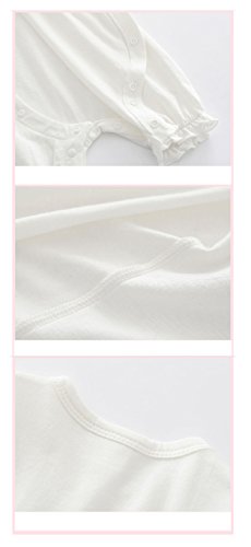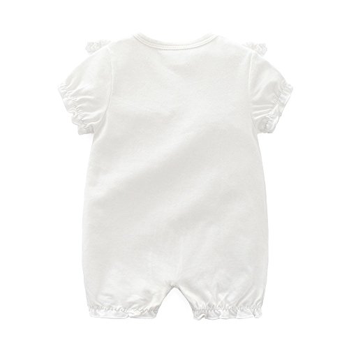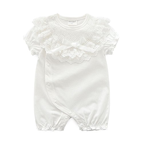 ALLAIBB ロンパース 女の子 前開き 半袖 ベビー服 カバーオール かわいい レース付き 生産お祝い お食い初め お宮参り size 66(3-6ヶ月) (純白)