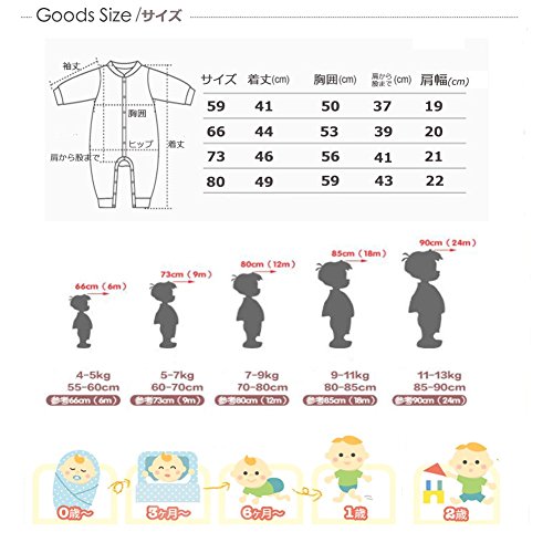サイズ:80 着丈:49cm 胸囲:59cm 肩幅:22cm 肩から股まで:43cm