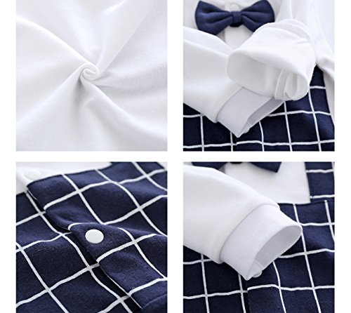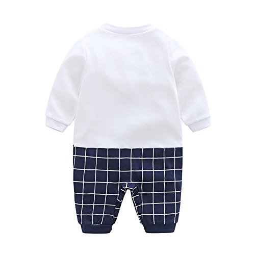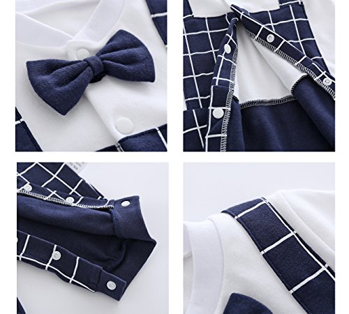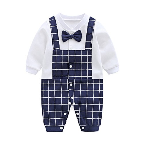 ALLAIBB ベビー服 ロンパース 前開き カバーオール フォーマル 蝶ネクタイ 男の子 春 秋 偽サロペット 紳士服 お洒落 格子 size 66(3-6ヶ月) (紺)