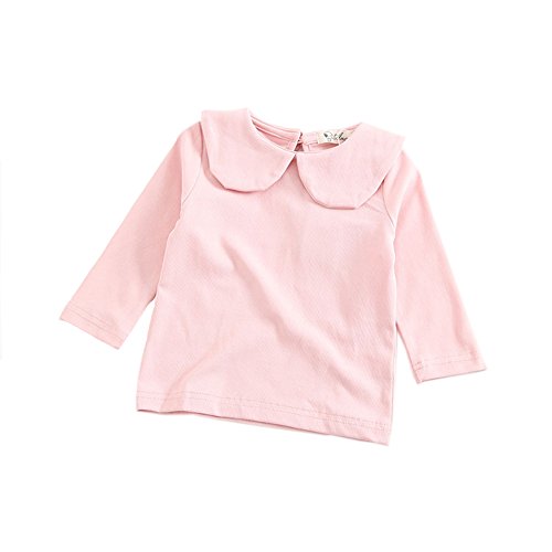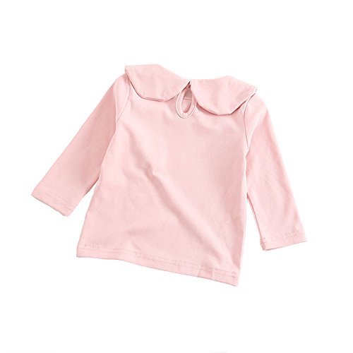 ALLAIBB ベビー服 シャツ コットン パジャマ 長袖 春秋服 女の子 襟付き 肌着 無地 シンプル size 60 (ピンク)