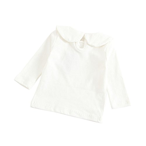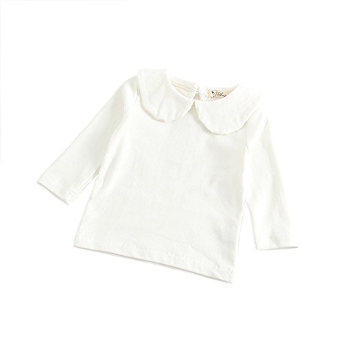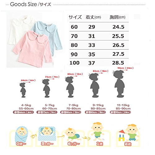 ALLAIBB ベビー服 シャツ コットン パジャマ 長袖 春秋服 女の子 襟付き 肌着 無地 シンプル size 80 (純白)
