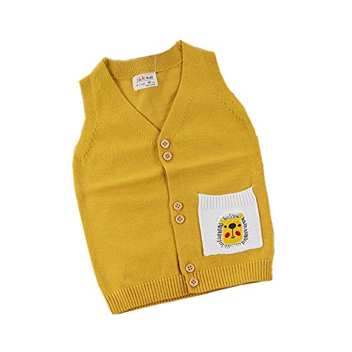 ALLAIBB ベビー服 ベスト 男の子 防寒 カーディガン 春秋服 プリント付き おしゃれ お祝い ギフト size 120 (イエロー)