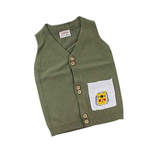 ALLAIBB ベビー服 ベスト 男の子 防寒 カーディガン 春秋服 プリント付き おしゃれ お祝い ギフト size 80 (ダーリーグリーン)