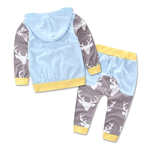 ALLAIBB ベビー服 上下 セット トレーナー 長袖 ポケット付き 長ズボン プリント付き 春 秋 男の子 女の子 おしゃれ size 70 (ブルー)