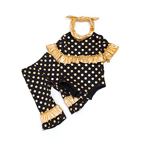 ALLAIBB ベビー服 ロングパンツ 半袖ロンパース 女の子 ヘアバンド キッズ 上下 セット ダンス衣装 幼稚園 size 66(3-6ヶ月) (ブラック)