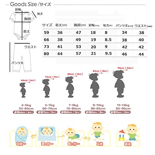 サイズ:66 着丈:38cm 肩幅:19cm 胸囲:49cm 袖丈:8.5cm パンツ丈:38cm ウエスト:40cm