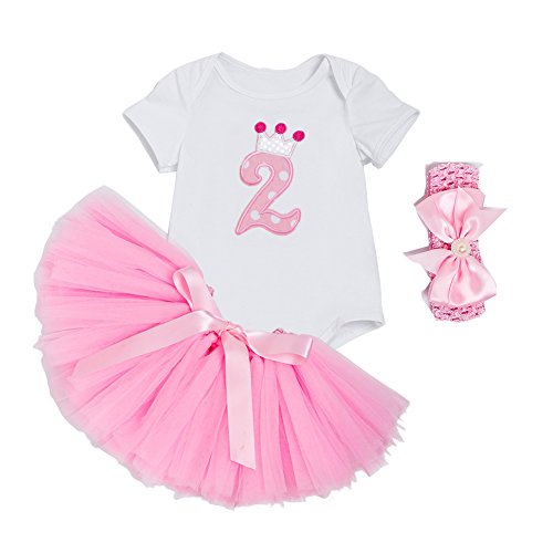 ALLAIBB ベビー服 女の子 半袖 ロンパース チュチュスカート ピンク ヘアバンド 3点セット 誕生日 出産祝い 2歳 XL