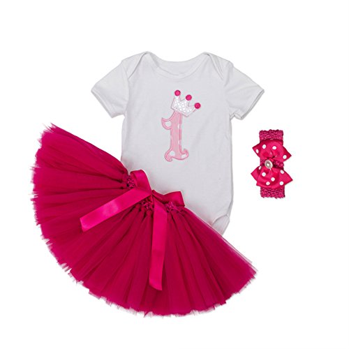 ALLAIBB ベビー服 女の子 半袖 ロンパース チュチュスカート バラ色 ヘアバンド 3点セット 誕生日 出産祝い 1歳 L