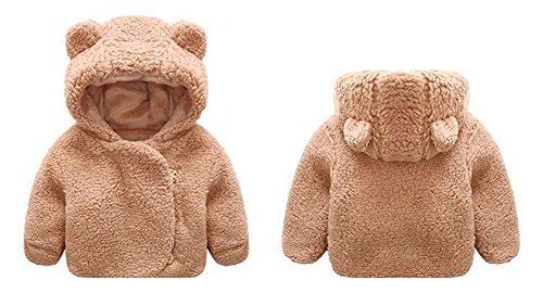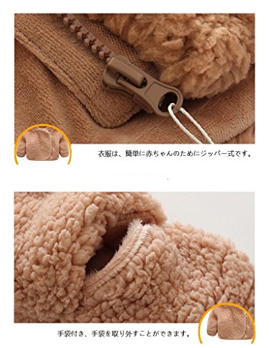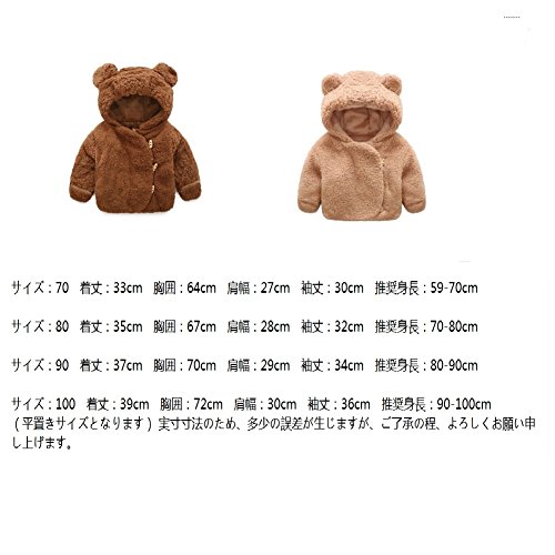 AIKSSOO ベビー服 コート 冬 もこもこ 耳付き ベビートップス 男の子 女の子 暖かい ふわふわ size 80 (ブラウン)
