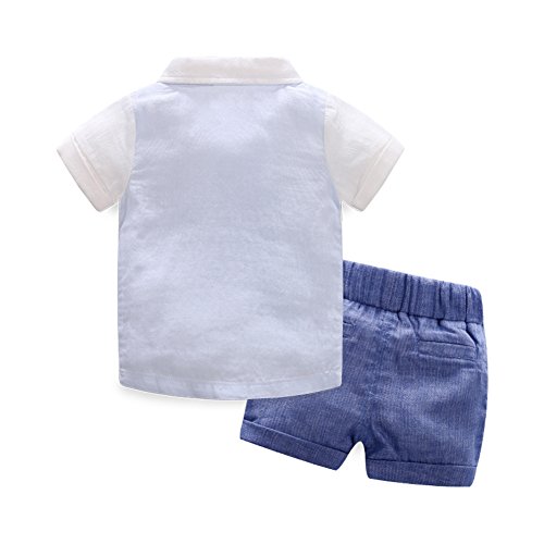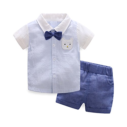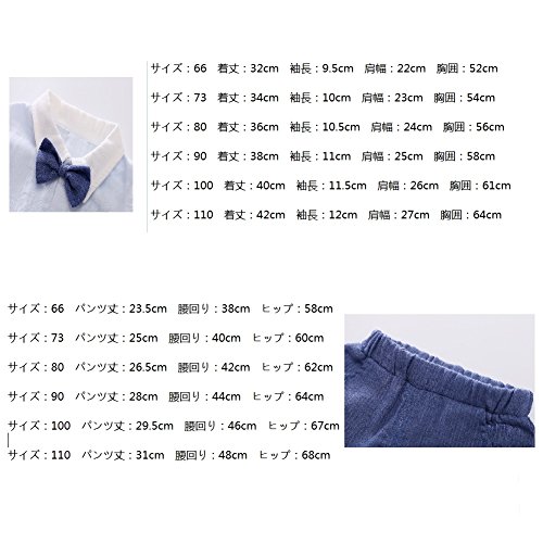 AIKSSOO 子供服 tシャツ ショートパンツ ボーイズ おしゃれ 蝶ネクタイ 2点セット 猫柄 かわいい size 73 (ブルー)