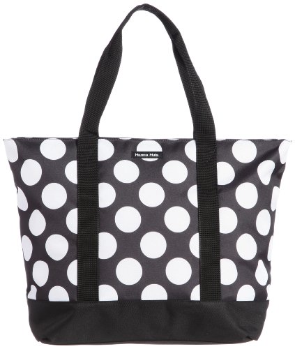 「Hanna Hula(ハンナフラ) ビッグトート ブラックドット」は、たくさんのものをドッサリ入れて使えるビッグトートバッグです。普段のお出かけにはもちろん、ピクニックや運動会等のイベントでも大活躍してくれるサイズです。ファスナー開閉。オープンポケット×2(内)。 品質表示 ●材質:ポリエステル