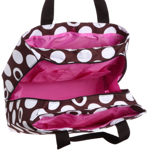 「Hanna Hula(ハンナフラ) Mスタイルトートバッグ モカドット」は、大きく3つにスペースが分かれていてそれぞれにポケットが豊富についた収納力抜群のマザーズバッグです。開口部分はファスナー及びマグネット仕様につき、簡単に荷物の出し入れが出来ます。(バッグ底部分には、シューズや汚れ物を入れるのに便利なポケット有り)