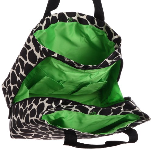 「Hanna Hula(ハンナフラ) Mスタイルトートバッグ ジラフブラック」は、大きく3つにスペースが分かれていてそれぞれにポケットが豊富についた収納力抜群のマザーズバッグです。開口部分はファスナー及びマグネット仕様につき、簡単に荷物の出し入れが出来ます。(バッグ底部分には、シューズや汚れ物を入れるのに便利なポケット有り)