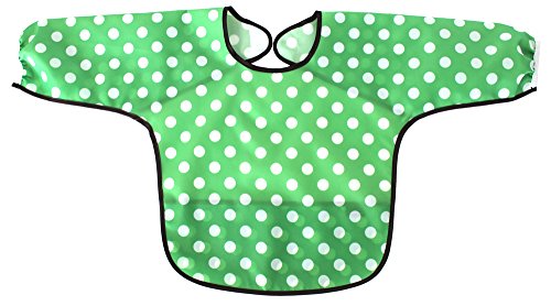 Hanna Hula(ハンナフラ) お食事エプロン(袖あり・長袖) ビブ 食べこぼし防止 ポルカグリーン