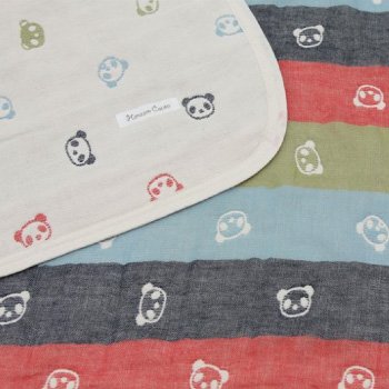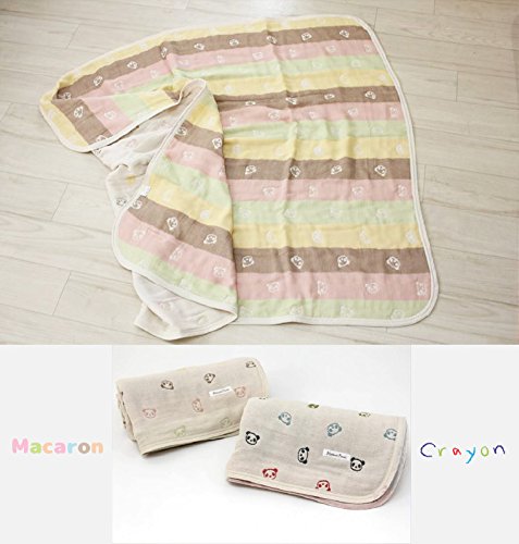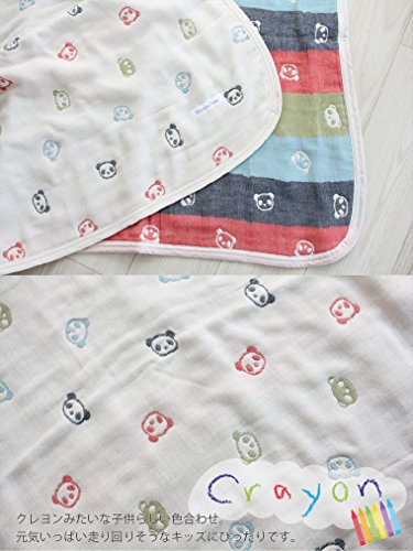 【HanzamCocoa】国産Hanzam Cocoa(ハンザムココア) 6重ガーゼケット 6重 タオルガーゼ ブランケット ひざ掛け ギフト 出産祝いおなかけっとマルチカラーパンダ柄 クレヨン クォーターサイズ(100×70cm) (ハンザムココアオリジナル) 日本製(三河木綿)