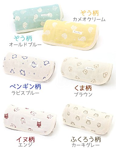 折り重なった層が冷房の冷たい風や、真夏の熱気から身体を優しく守ってくれます。意外に思われる方もいらっしゃいますが、ガーゼは「涼しい。だけど、あたたかい」のです。だから春先や秋口の肌寒い季節にもこの層が活躍してくれるでしょう。汗をかいてもさらっとした触り心地で、赤ちゃんも快適。デザインがかわいらしいので、贈り物にも最適です。