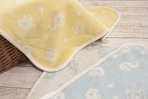【HanzamCocoa】日本製 ひなたぼっこ綿毛布 しっかり厚手 クォーターサイズ ベビーサイズ 100×70cm ゾウ柄オールドブルー