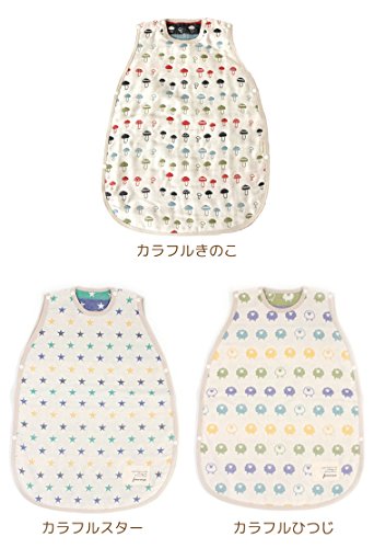 【Hanzam Cocoa(ハンザムココア)】 国産無添加6重ガーゼおなかけっとシリーズ スリーパー マルチカラーキノコ 日本製(三河木綿) 60-90サイズ相当 ガーゼケット タオルガーゼ ベスト かいまき 半纏