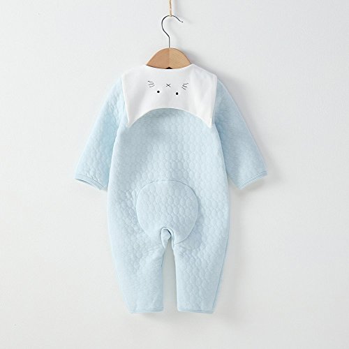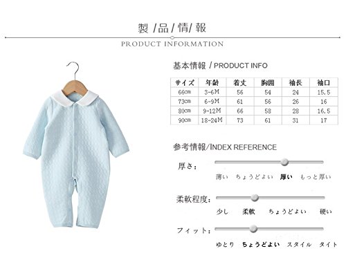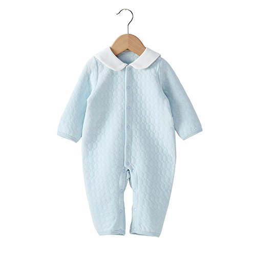 ベビー服 長袖ロンパース 白襟付き 新生児 子供服 春 秋 冬 綿100% カバーオール 赤ちゃん ニットキルト 無地 肌着 ブルー 6M
