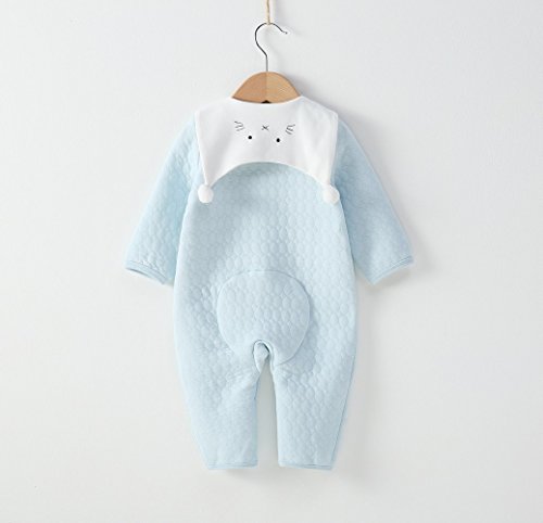 ベビー服 長袖ロンパース 白襟付き 新生児 子供服 春 秋 冬 綿100% カバーオール 赤ちゃん ニットキルト 無地 肌着 ブルー 12M