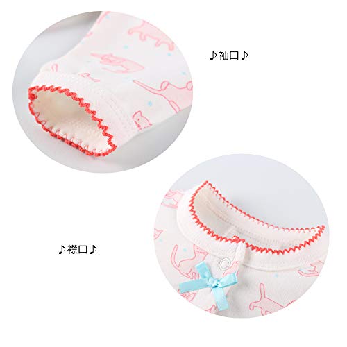 ベビー服 ロンパース カバーオール 前開き 女の子 長袖 猫ちゃん柄 ピコレース コットン100% ピンク 3-6M