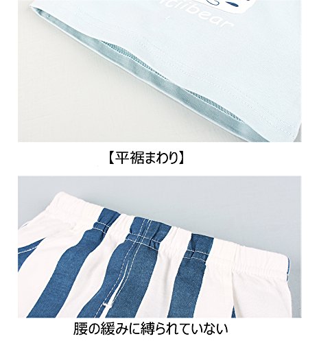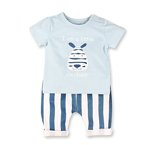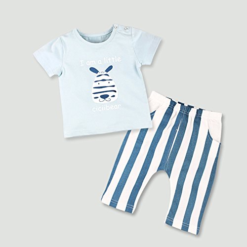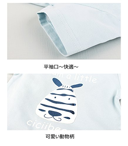夏 ベビー服 Tシャツ+パンツ 上下セット 男の子 女の子 動物柄 縞柄 コツトン ブルー 6M