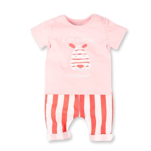 夏 ベビー服 Tシャツ+パンツ 上下セット 男の子 女の子 動物柄 縞柄 コツトン ピンク 9M