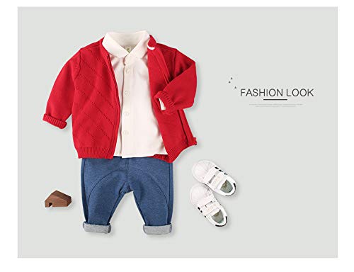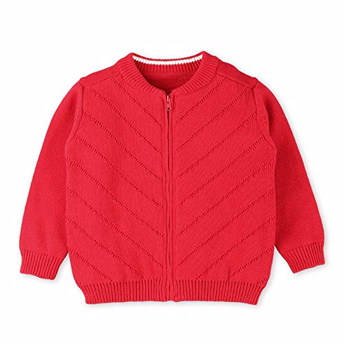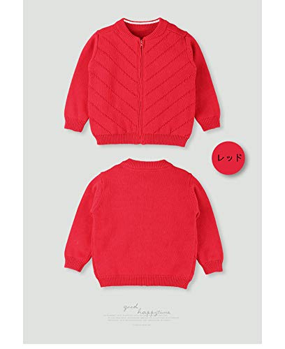 ベビー服 カーディガン ニットセーター コート 子供服 新生児 春 秋 100%コツトン 長袖 女の子 男の子 赤ちゃん 無地 ファスナー レッド24M