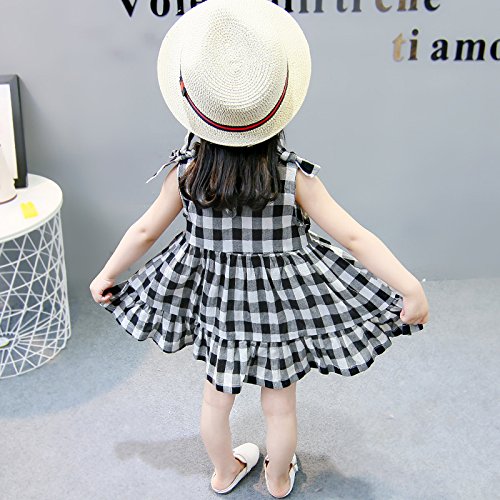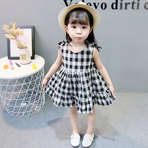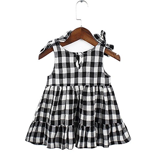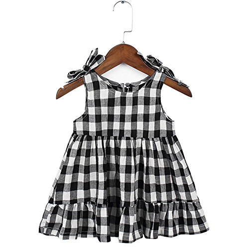 夏 ベビー服 ワンピースドレス チェック柄 ノースリーブ ふわふわスカート 赤ちゃん 蝶結び 縞模様 コットン100% ブラック24-36M