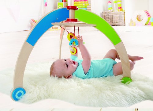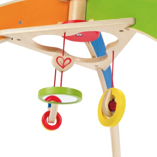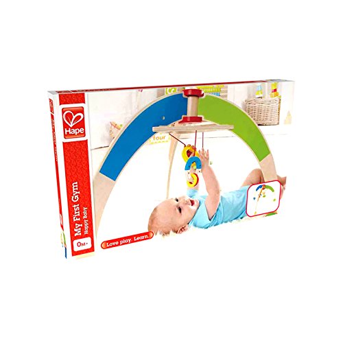 Hape's 'My First Gym' encourages physical activity and keeps your baby entertained! Colourful wooden rattles and rings encourage reaching and kicking and the mirror also stirs the curiosity as it dangles from the sturdy wooden frame on wheels.2012 marks a new dawning for Educo, nearly 30 years after its conception, as it evolves and re-launches with a fresh new identity as Hape and a new refrain 'Love Play. Learn'. ?We believe children do not play to learn; children learn because they play?. Their toys are created to inspire play, learning and exploration of the world we live in. Hape also believes that the future begins - and belongs - to our children. They feel it is their duty to leave them with infinite possibilities, not unsolvable problems. Hape work to very high standards and consider the environment at every stage in the development of their award winning toys. They use FSC accredited wood, carry out rigorous safety checks on every toy and promote fair and ethical working practices.