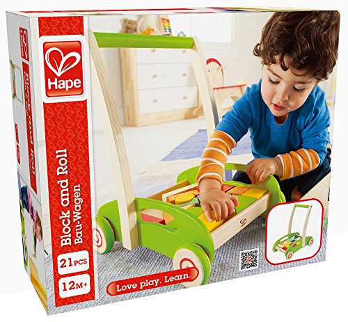 Hape's Block and Roll push along block walker. Fill, build, dump, carry, push, pull, play. How many more ways can your child use this do-everything toy?2012 marks a new dawning for Educo, nearly 30 years after its conception, as it evolves and re-launches with a fresh new identity as Hape and a new refrain 'Love Play. Learn'. ?We believe children do not play to learn; children learn because they play?. Their toys are created to inspire play, learning and exploration of the world we live in. Hape also believes that the future begins - and belongs - to our children. They feel it is their duty to leave them with infinite possibilities, not unsolvable problems. Hape work to very high standards and consider the environment at every stage in the development of their award winning toys. They use FSC accredited wood, carry out rigorous safety checks on every toy and promote fair and ethical working practices.
