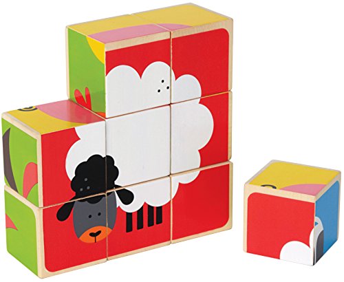 【絵合わせ】 9つのブロックを合わせる6面パズルは、子供たちに6匹の良く知っている動物をいろいろな組合せから探させます。